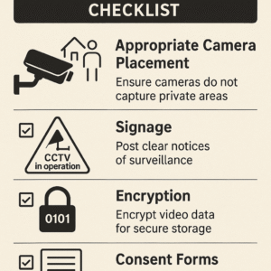 - پیش از نصب دوربین، از تمامی ساکنان یا کارکنان مجوز مکتوب یا آگاهانه دریافت کنید.